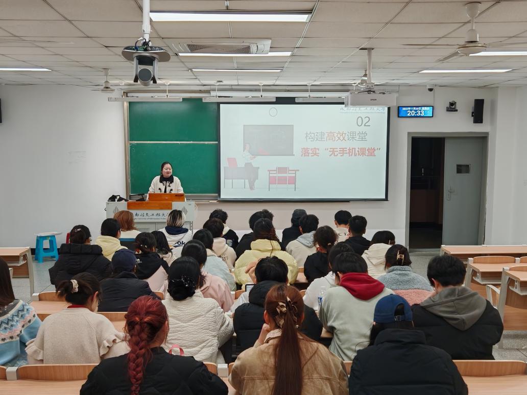 学生违纪处分办法》,明确考试纪律要求,强调诚信应考的重要性。随后,针对学风建设,再次提出“无手机课堂”倡议,鼓励同学们课前将手机放入“手机收纳袋”,营造专注、高效的学习氛围。