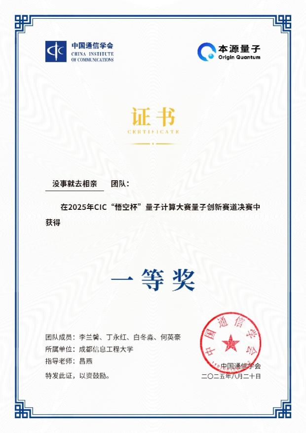 2025年CIC“悟空杯”量子计算大赛量子创新赛道一等奖