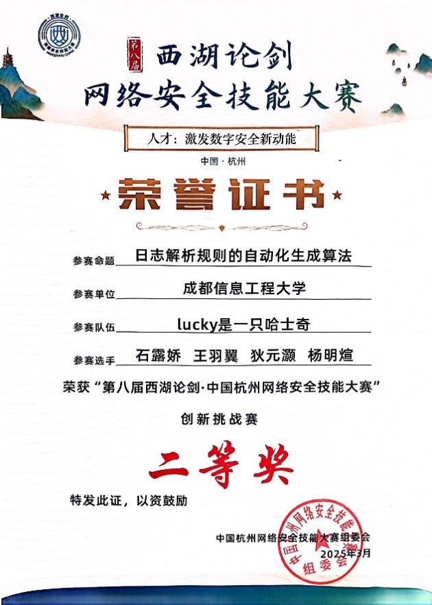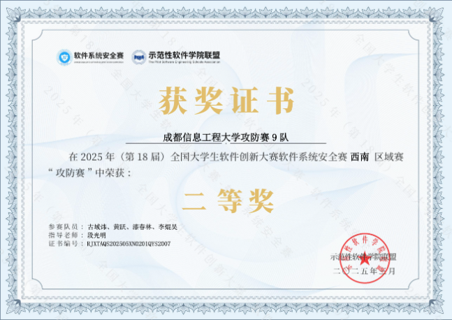 第18届全国大学生软件创新大赛软件系统安全赛全国总决赛三等奖、西南区域赛二等奖