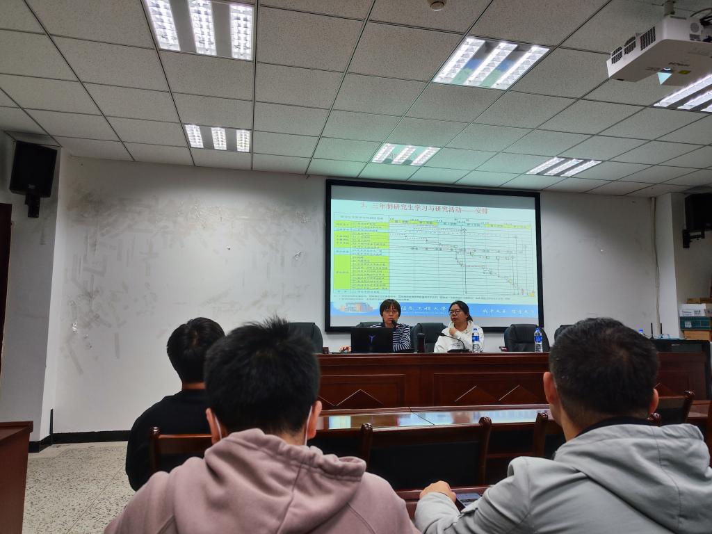 接着,研究生教学秘书邵丹老师作研究生培养管理教育,详细介绍了研一到研三期间各个重要时间节点,包括研究生导师双选、制定培养方案、制定专业实践计划、学位论文阶段性工作等,帮助同学们树立阶段性目标,合理规划学习路线。