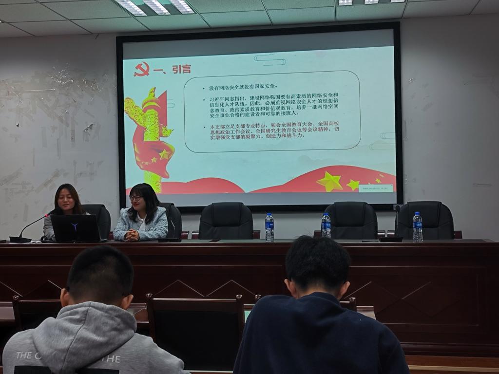 紧接着研究生党支部副书记王晨莉作新生入党教育,并从支部构成、支部所取得成就、支部委员设置等方面对支部情况做了介绍。