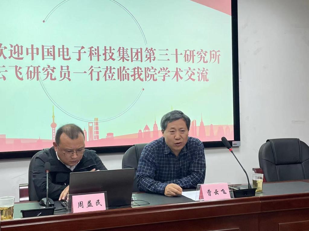 随后,中国电子科技集团公司第三十研究所高级专家曹云飞向大家介绍了研究所实验室的工作内容以及目前致力研究的前沿项目,为参会同学指明学术研究方向。