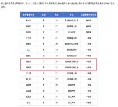 (芯谷产业学院)先进密码与量子计算团队师生表现优异,荣获全国一等奖,两名研究生入选“优胜选手”并直通第39届全国青少年科技创新大赛。