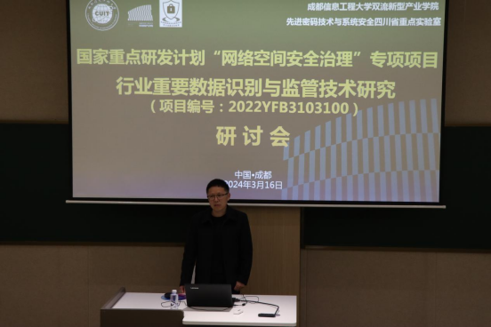 芯谷校区双流新型产业学院召开了国家重点研发计划“网络空间安全治理”专项项目“行业重要数据识别与监管技术研究(编号:2022YFB3103100)”研讨会。