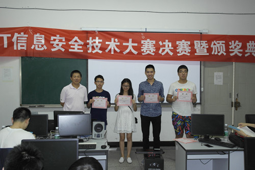 本次决赛共有14支队伍,包括校内9支队伍,以及来自西南民族大学、电子科技大学、西南石油大学的共5支队伍。决赛共产生1名一等奖,3名二等奖和5名三等奖以及5名优秀奖。最终一等奖由来自我校信息安全工程学院 “我们有女王大人”队伍的四名同学获得。各参赛队伍在本次比赛中精诚合作,奋战六小时,展现了高超的学术涵养和良好的意志品质。同时同学们也在本次比赛中收获了实战经验和校内外同学的友谊。