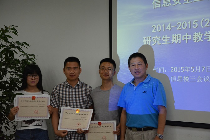 信息安全工程学院2014-2015学年度第二学期研究生期中教学检查座谈会于5月7日上午在三会议室举行。信息安全工程学院党总支书记许鸿涛、副院长张仕斌、研究生导师、授课教师代表、研究生辅导员以及2012级、2013级、2014级研究生全体同学参加了座谈会。