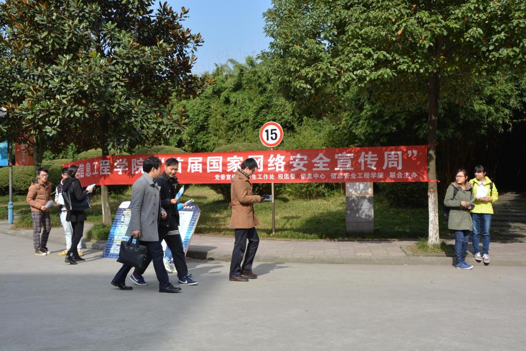 11月27日中午,成都信息工程学院在银杏大道举行了“共建网络安全、共享网络文明”为主题的签字仪式,学校副校长余万伦、于世祥,保卫处处长张弛,信息安全学院党总支书记许鸿涛等老师参加了签字仪式。