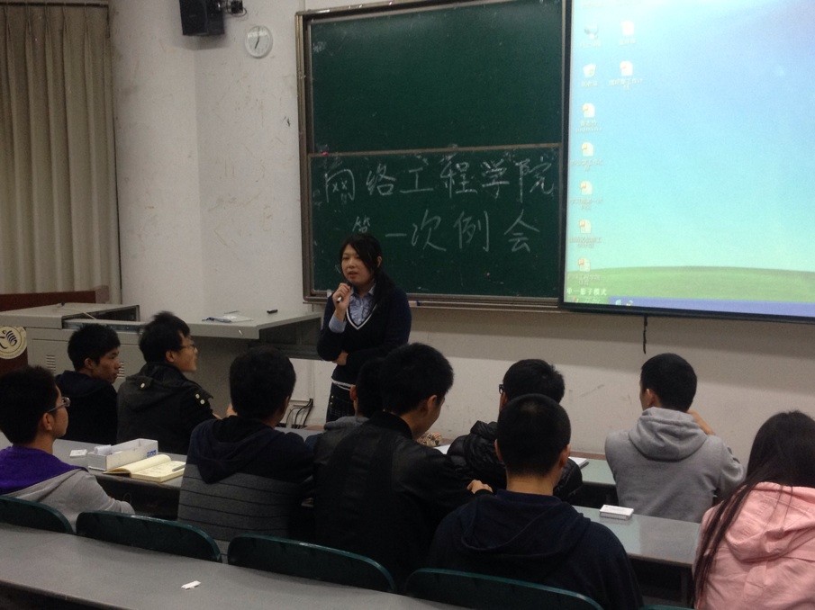 10月31日,网络工程学院新一届分团委学生会第一次例会在4213教室举行。参加会议的有分团委副书记陶首印,学生会主席喻堃铃,副主席任重远、郑新鹏程、代军益,青年志愿者协会网络分会会长梅超,书记助理易林亿,以及各部部长和大一干事。
