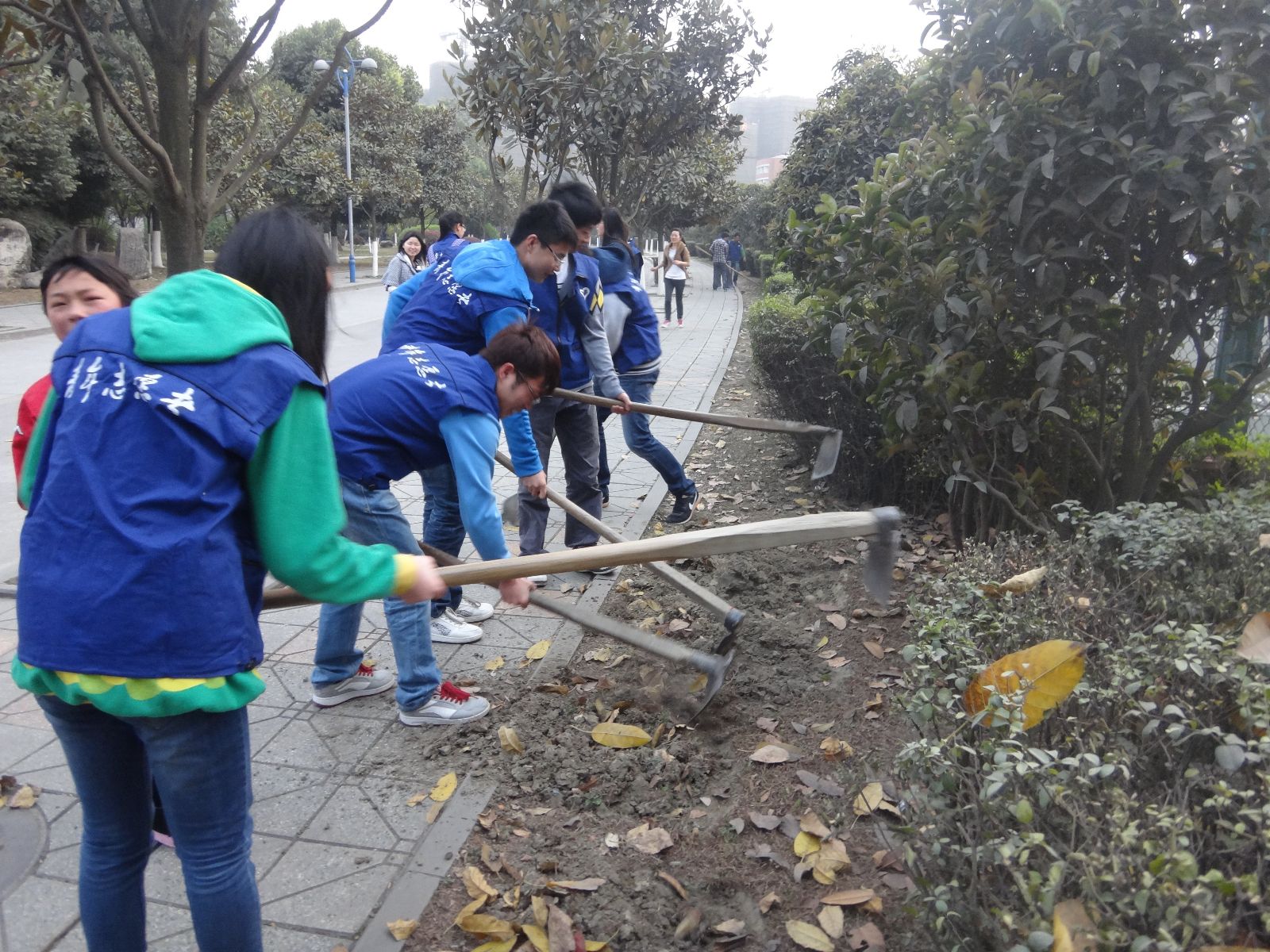 11号下午,志愿者们穿上志愿者服,一个个怀着愉悦的心情,拿着工具来到指定地点,大家积极动手,松土、浇水、捡树叶,大家都积极认真执行着自己的任务,为第二天撒种子做好准备。
