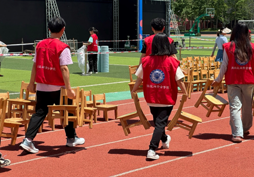 在活动开始前,志愿者们提前到达幼儿园,与园方工作人员紧密合作,根据活动场地的实际情况,精心规划板凳的摆放位置,确保每个孩子都有座位;同时,志愿者们协助老师打气球,将现场装饰得欢乐温馨。