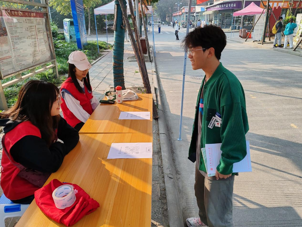活动前期,志愿者提前准备好活动礼品及相关用品,布置场地,并进行了有序分工分工,以确保活动正常进行。活动中期,志愿者到场宣传消防知识,并为同学们讲解活动的参与方式,通知同学们统一时间进行消防知识竞赛,并积极为同学们答疑相关问题。此外志愿者还邀请活动者与消防标语同框,并且在同意拍照的情况下合影留念。在竞赛结束后,志愿者统计好消防知识竞赛排名,积极为获奖的同学分发小礼品。在活动结束后,志愿者疏散人群,打扫卫生,收拾场地,归还相应设备。