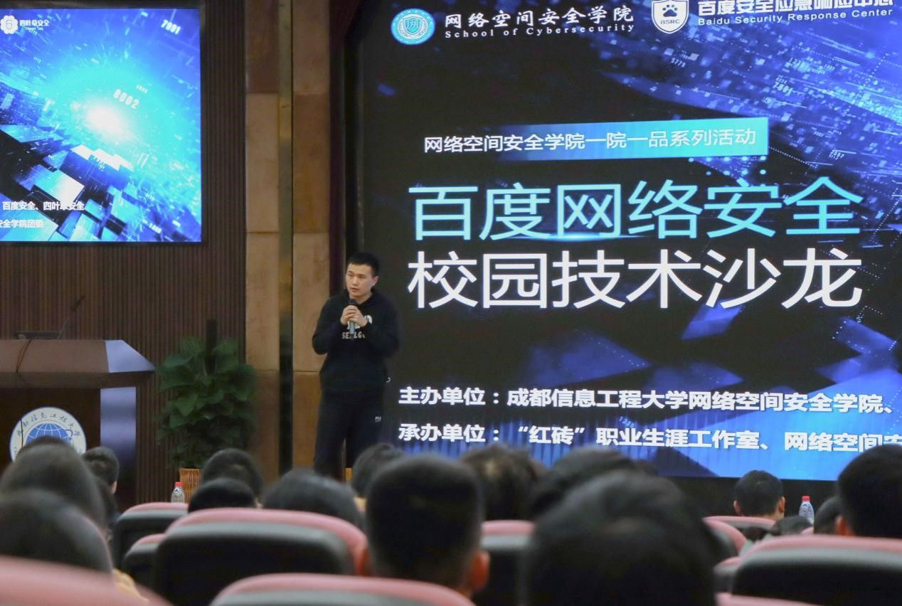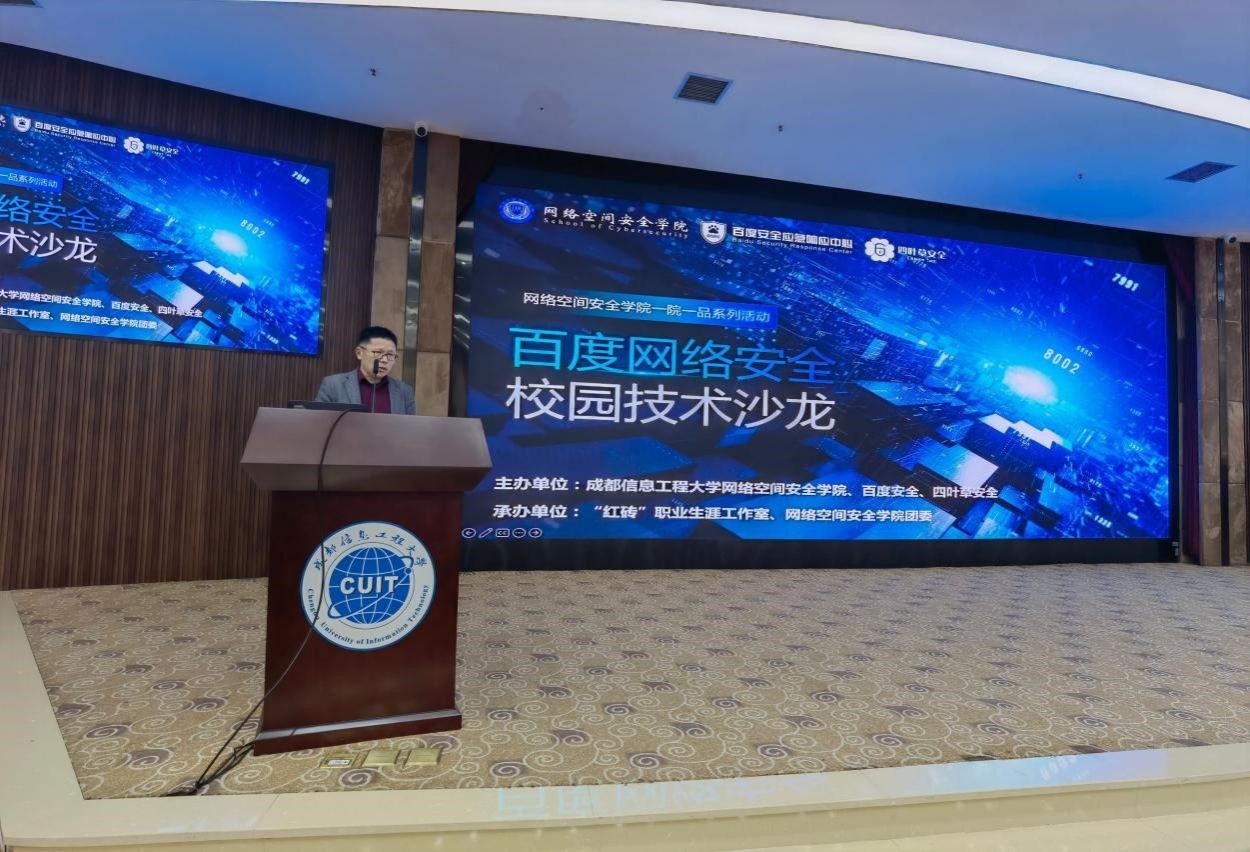 邀请来自百度安全、四叶草安全三位攻防专家为在校大学生分享一线网络安全实战经验。学院领导、百度安全领导、四叶草安全领导及全校各学院200余名师生参加技术沙龙。