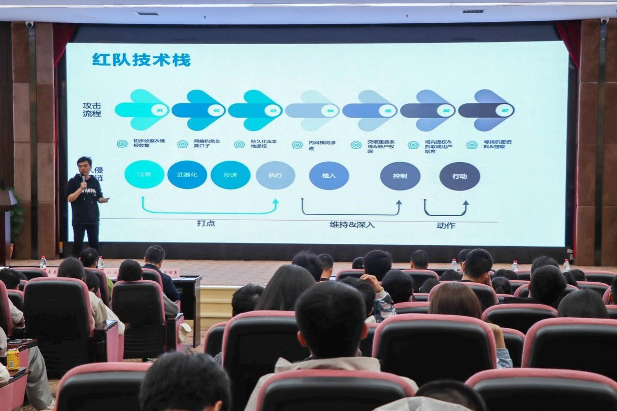 第二位演讲嘉宾是百度安全高级安全工程师孙韬,他的分享主题是“甲方蓝军生存指北”,从红队技术团队组建、红队常见攻击手法、流程、技术栈到甲方安全技术栈,甲方安全关注点等等,为同学们介绍了实战护网行动中蓝方该如何应对