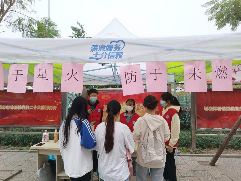 分会于2022年11月9日在航空港校区银杏大道进行了“警于星火,防于未‘燃’”的消防主题摆点宣传活动。