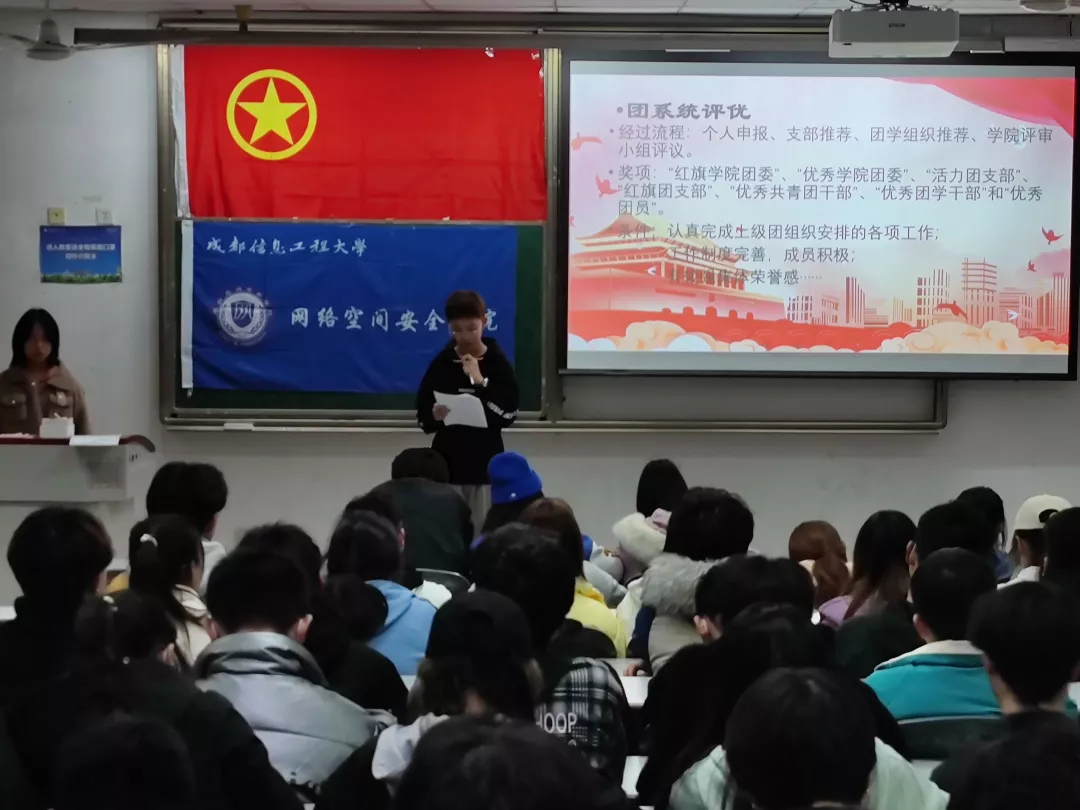 本次团课以开展学习“基础团务工作”主题教育为核心,从“了解我校团学组织的基本架构和工作职能”、“第二课堂成绩单”、“班团一体化”、“中国共青团的发展团员工作细则与团员基层团组织选举规则”以及“团的相关知识”五个方面展开,并在最后进行了团支书面对面答疑活动。