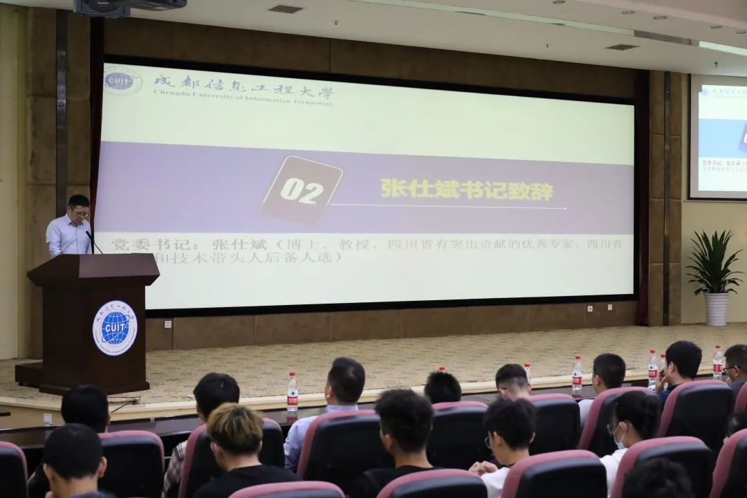 典礼在雄浑的国歌声中拉开序幕,学院党委书记张仕斌为本次开学典礼致辞,他代表学院欢迎2020级新生成为成信大网安新人,张仕斌介绍了泡芙短视频