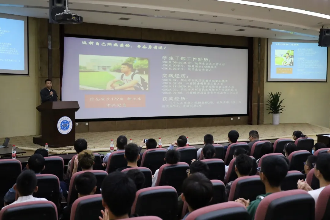 2017级信息安全专业优秀在校生杨亚东给学弟学妹分享了自己大学的学习和学生干部经历,因兴趣而热爱,热爱而坚持,他收获了十多项集体和个人荣誉,希望学弟学妹们在奋斗中收获充实的人生、无愧于自己的人生,属于自己最独一无二的人生!