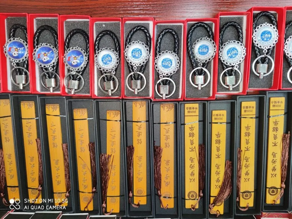 为了让同学们在这个特殊毕业季里也能感受到毕业氛围,学院提前谋划,为大家设计定制毕业纪念品,包括印有学校logo和学院最新推出的吉祥物安安的钥匙扣以及竹制书签。书签一面印有学校校标和校训“成于大气、信达天下”另外一面印有泡芙短视频