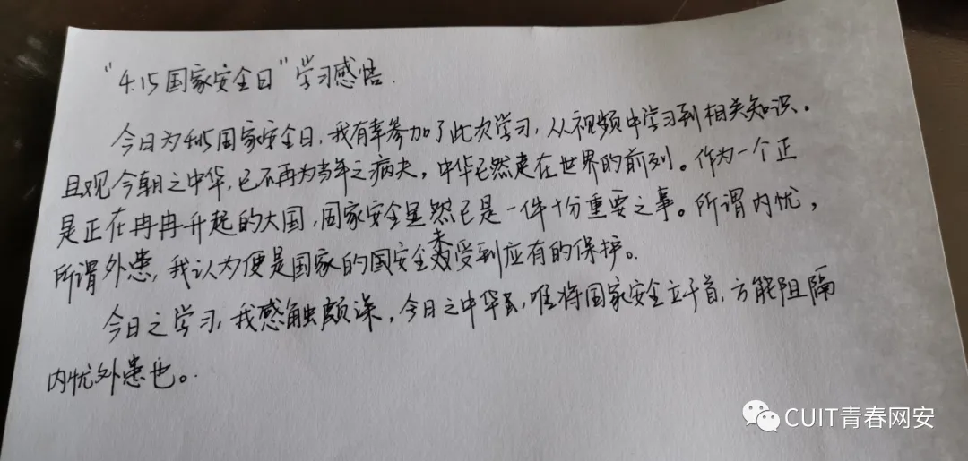 的一员,我们也要做到求真、务实,在求知中不断成长,为保障国家网络安全贡献青春力量。