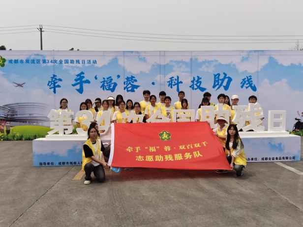 组织志愿者于5月17日参加了由成都市双流区人民政府残疾人联合会主办、成都全益食品有限公司协办的“牵手‘福蓉’,科技助残”活动。