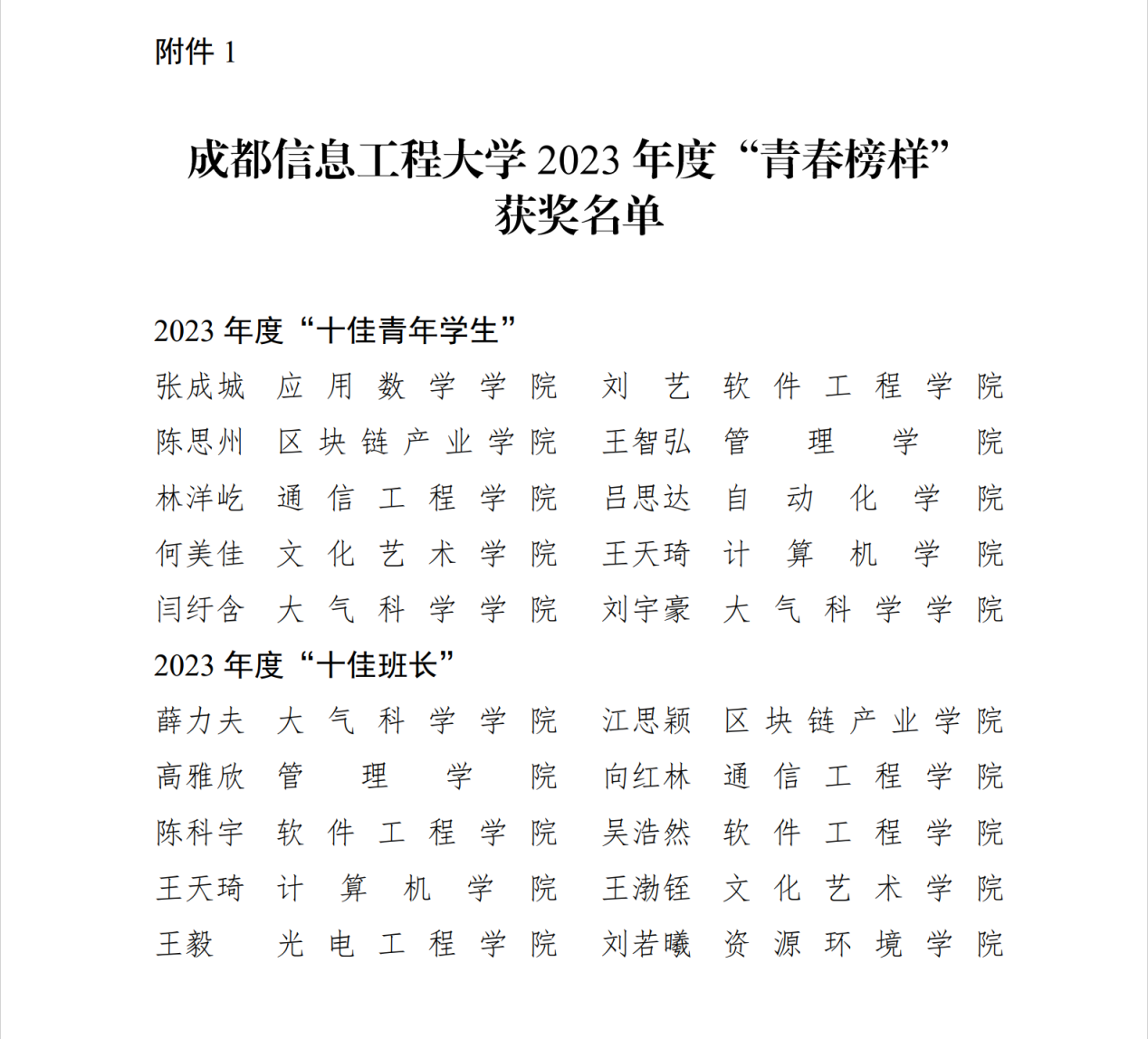 2023年度“青春榜样”获奖名单