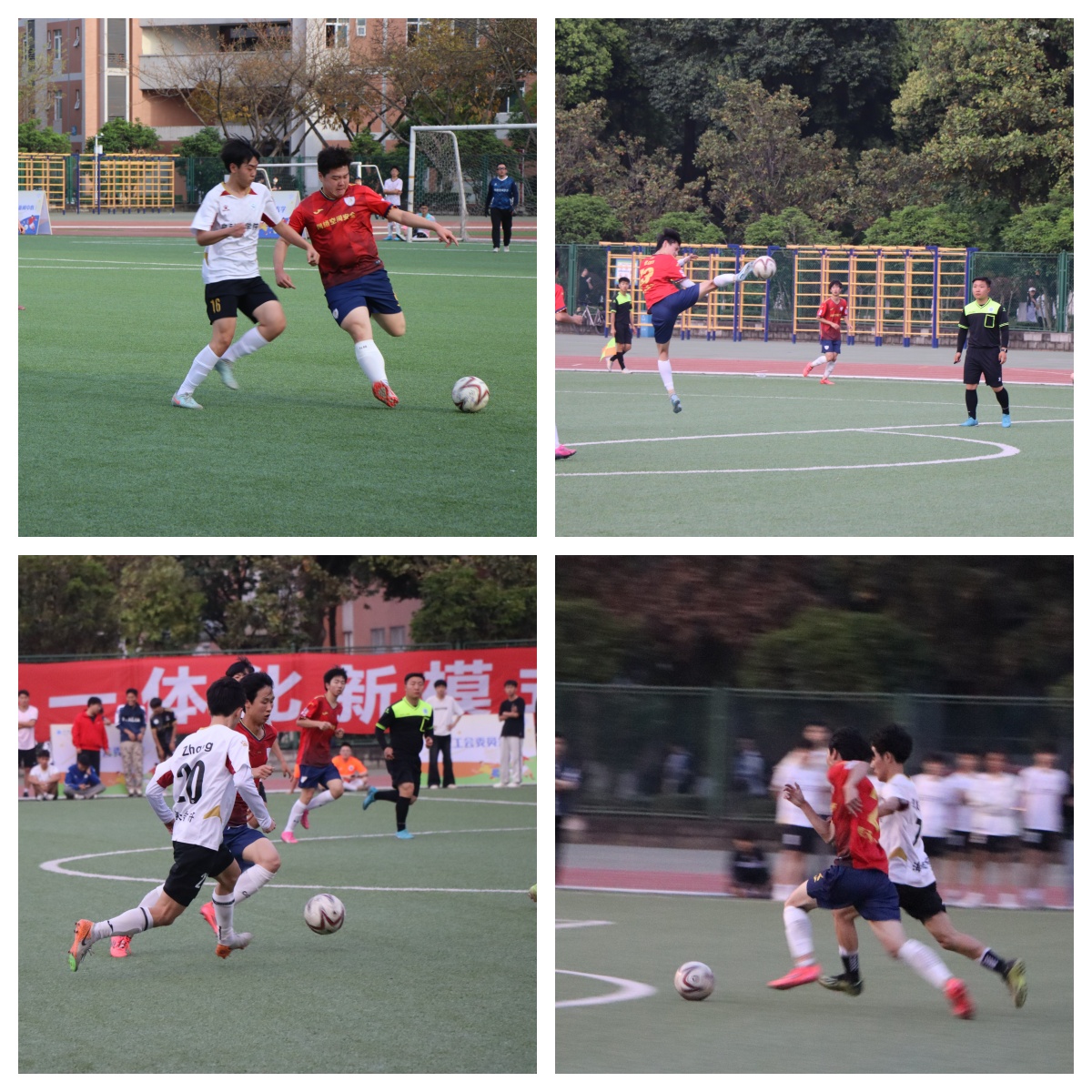 与自动化学院联袂奉上精彩对决。比赛开始,网安球队前锋以猛烈的攻势拿下首分。紧接着,自动化学院成功踢进一球,将比分扳平。在下半场,网安队调整战术,一波完美传球配合以2:1领先自动化学院。在比赛最后阶段,自动化学院全力反攻。最终经过90分钟的鏖战,双方将比分定格为2:2。