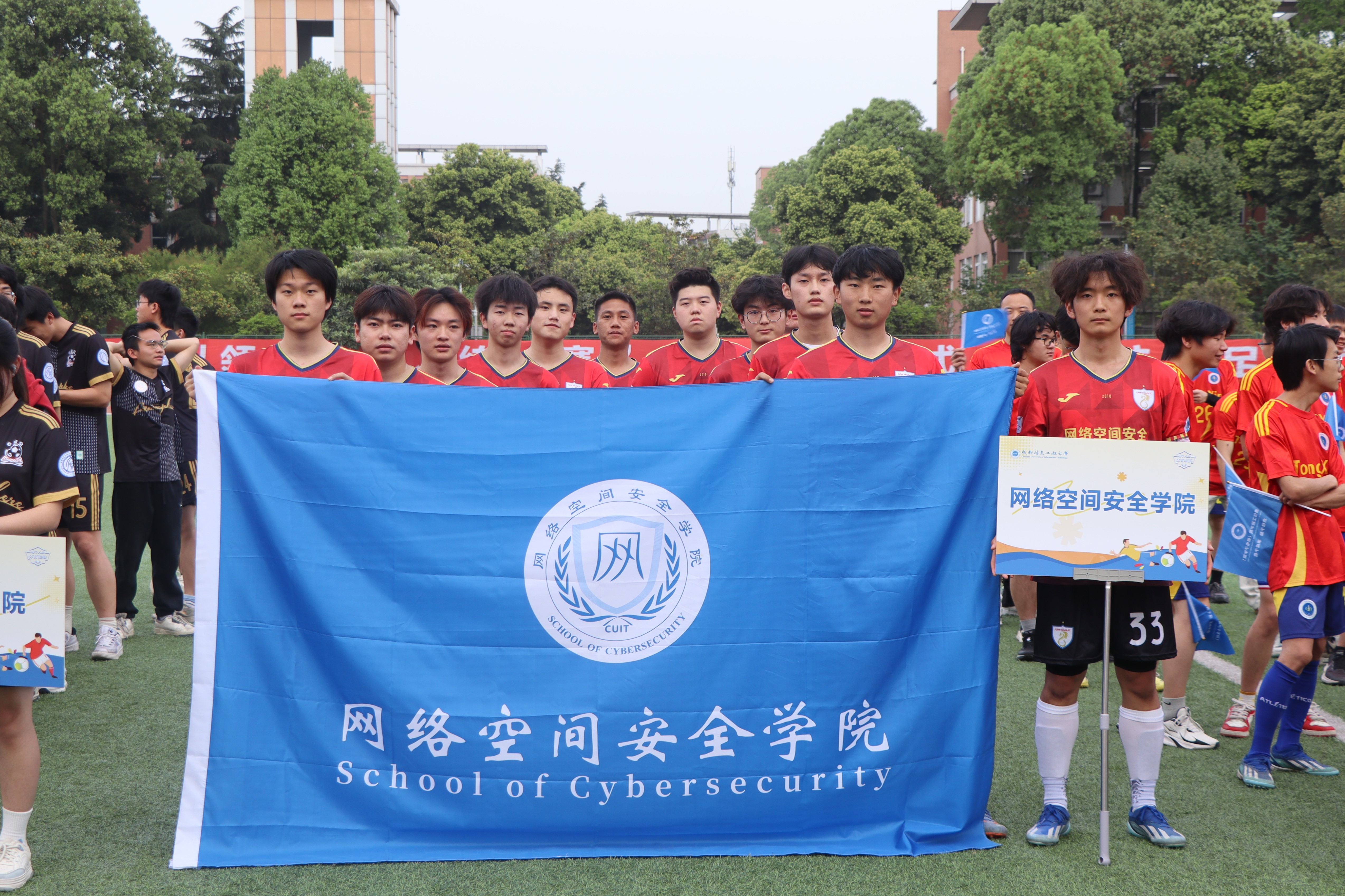 当终场哨响,双方队员互相致意。这场扣人心弦的比赛展现了球队精准的战术执行与高超的竞技水平,体现了良好的体育精神。同时促进了院系间的交流,有效提升了学生团队协作意识与集体荣誉感,展现了成信学子顽强拼搏的精神风貌。