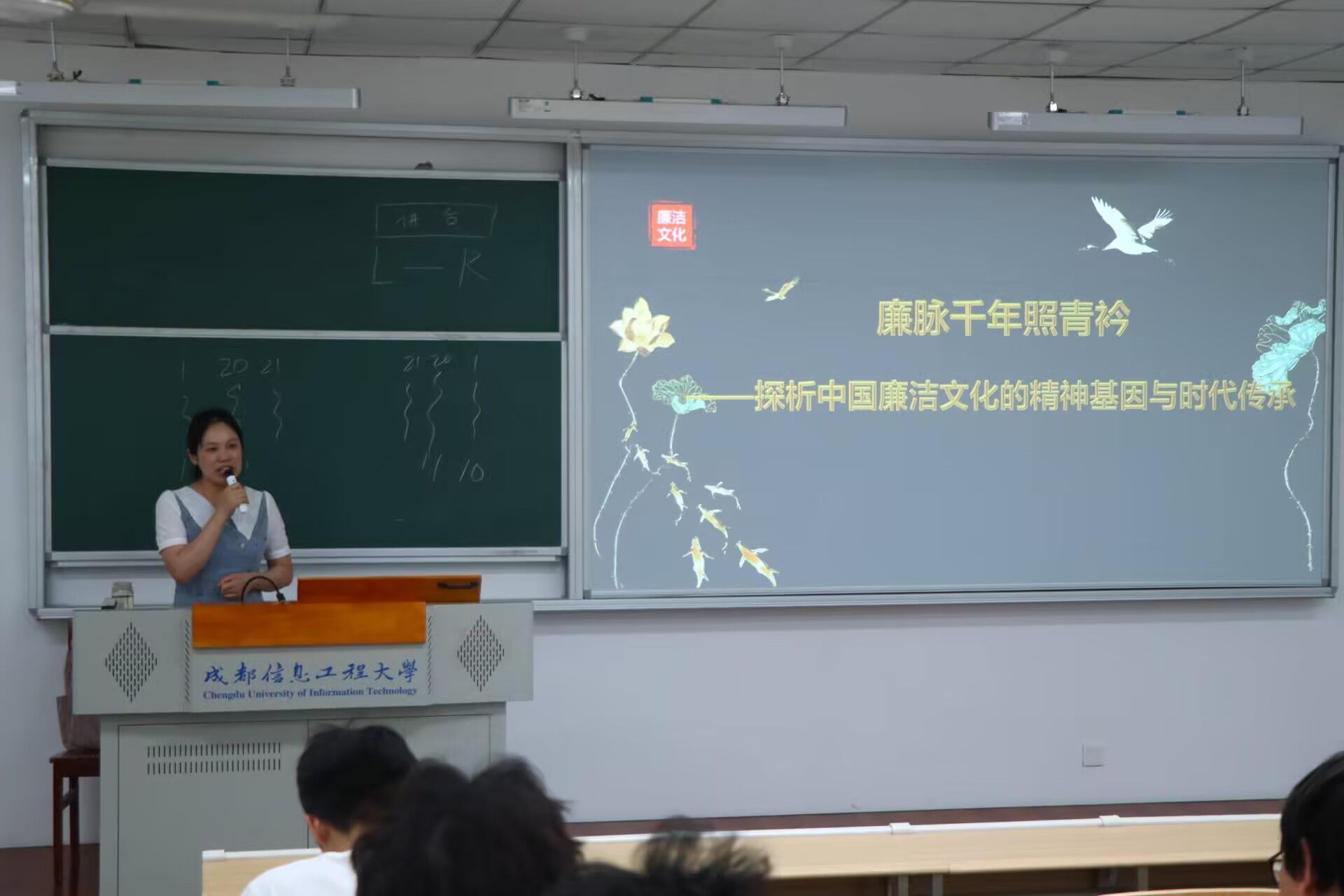 在解析廉洁文化的精神内核时,肖艳老师旁征博引,将传统廉德思想与现代价值观相联结。她既梳理了 “清正廉洁”“克己奉公” 等理念的文化渊源,又结合当代社会语境,阐释了廉洁文化在职业道德、社会治理中的现实意义。通过古今案例的对照分析,她引导听众思考:传统廉洁文化中的 “修身”“慎独” 思想,如何在数字化时代转化为个人修养与社会共识。讲座中,她虽未列举具体人物事迹或制度细节,却通过对 “廉” 之哲学内涵、伦理价值的阐释,让师生感受到廉洁文化跨越时空的生命力。