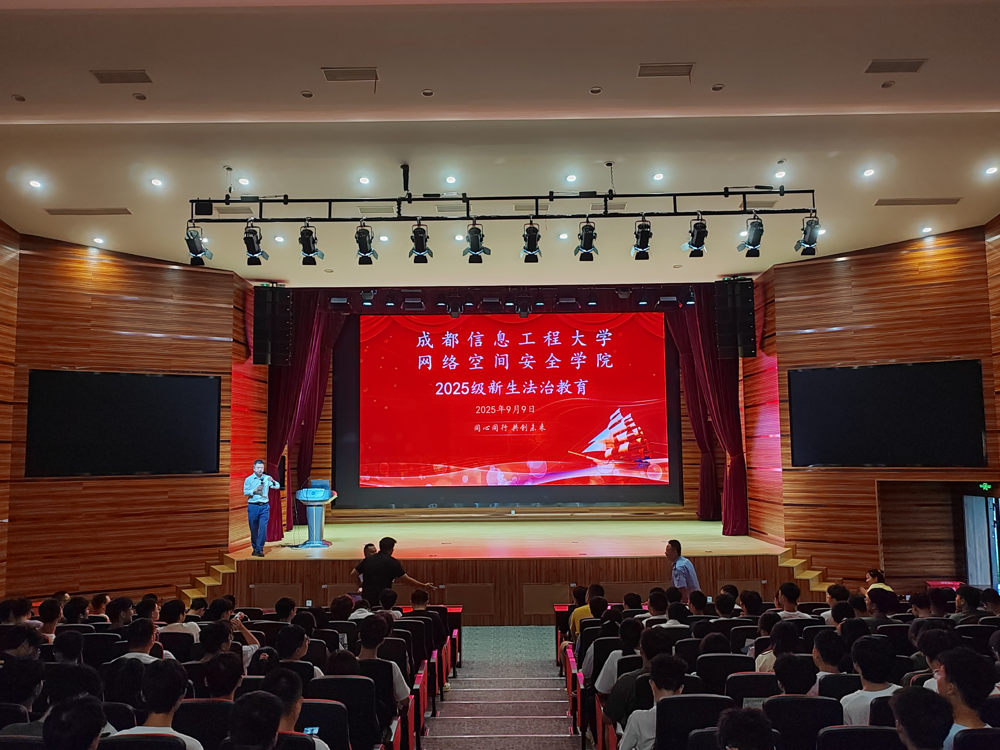 国家网络安全宣传周系列活动之大学生“法治教育”讲座于近日在成信礼堂召开。学院党委副书记陈智勇、团委书记夏焜、新生辅导员张琴及全体2025级本科新生共同参加本次讲座。