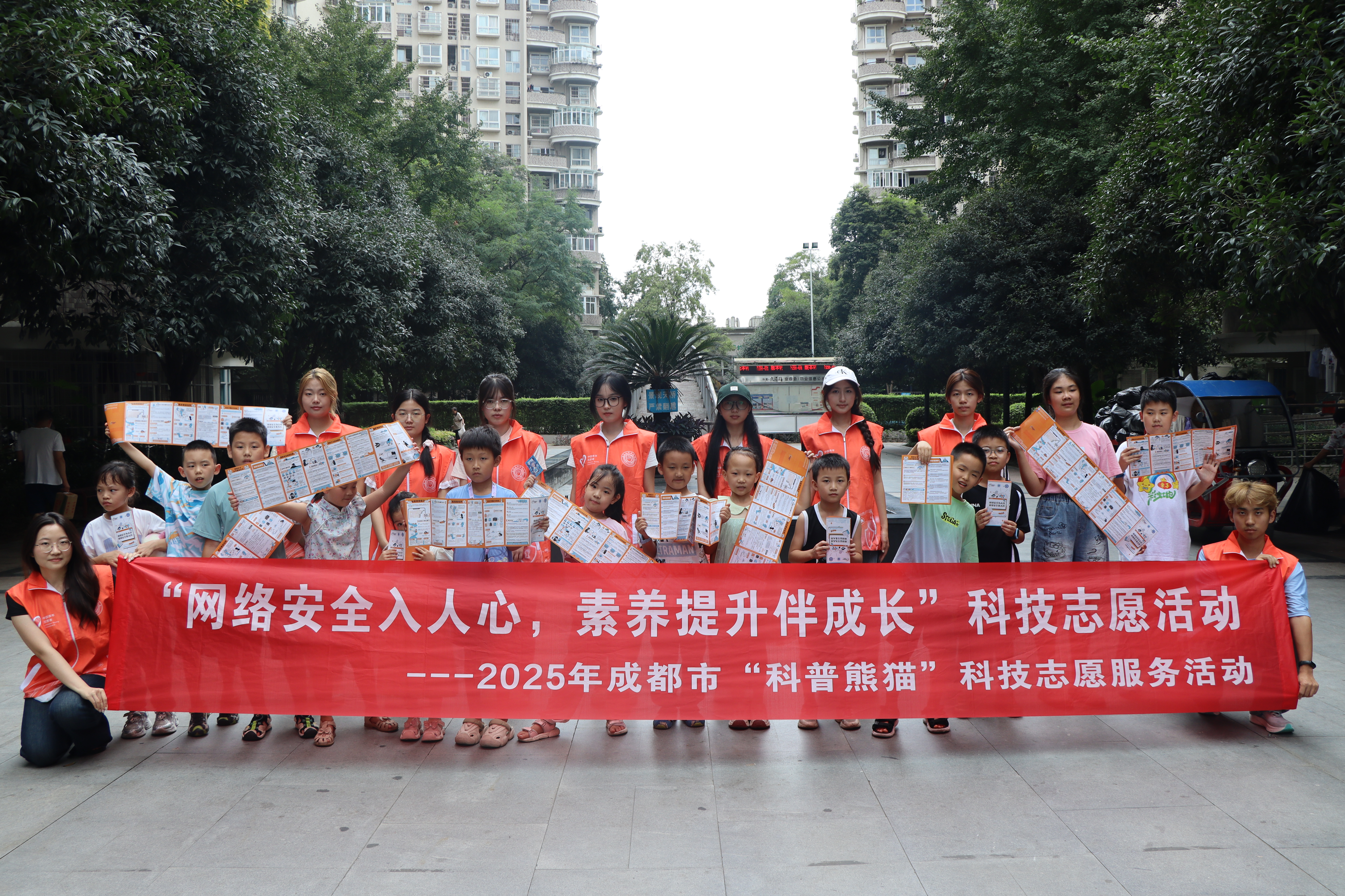 9月14日,青志协网安分会的志愿者们开展了“网络安全入人心,素养提升伴成长”科技志愿活动之2025年成都市“科普熊猫”科技志愿服务活动。本次活动以“筑牢网络安全屏障,守护人民数字家园”为主题,为久居福小区的小朋友们打造了一场生动有趣的网络安全启蒙活动。