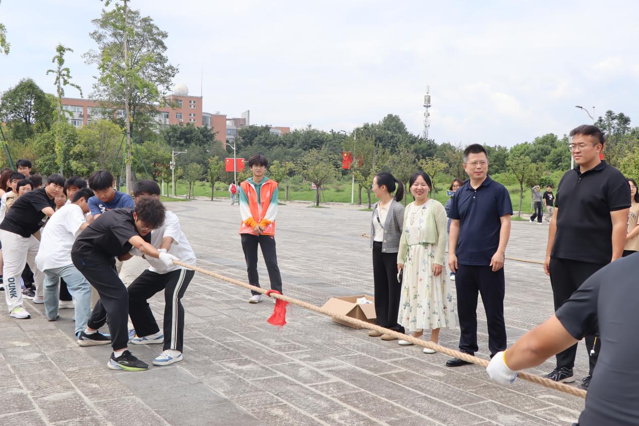比赛在阵阵掌声与欢呼声中圆满落下帷幕。赛后,学院党委副书记陈智勇、学生科副科长贾茜和新生辅导员们为获奖班级颁发奖品。一根麻绳,串联起团结与友爱;一次比拼,传递出勇气与力量。本次拔河比赛增强了2025级新生的集体归属感与班级凝聚力,为新学期的校园生活增添了浓墨重彩的一笔。