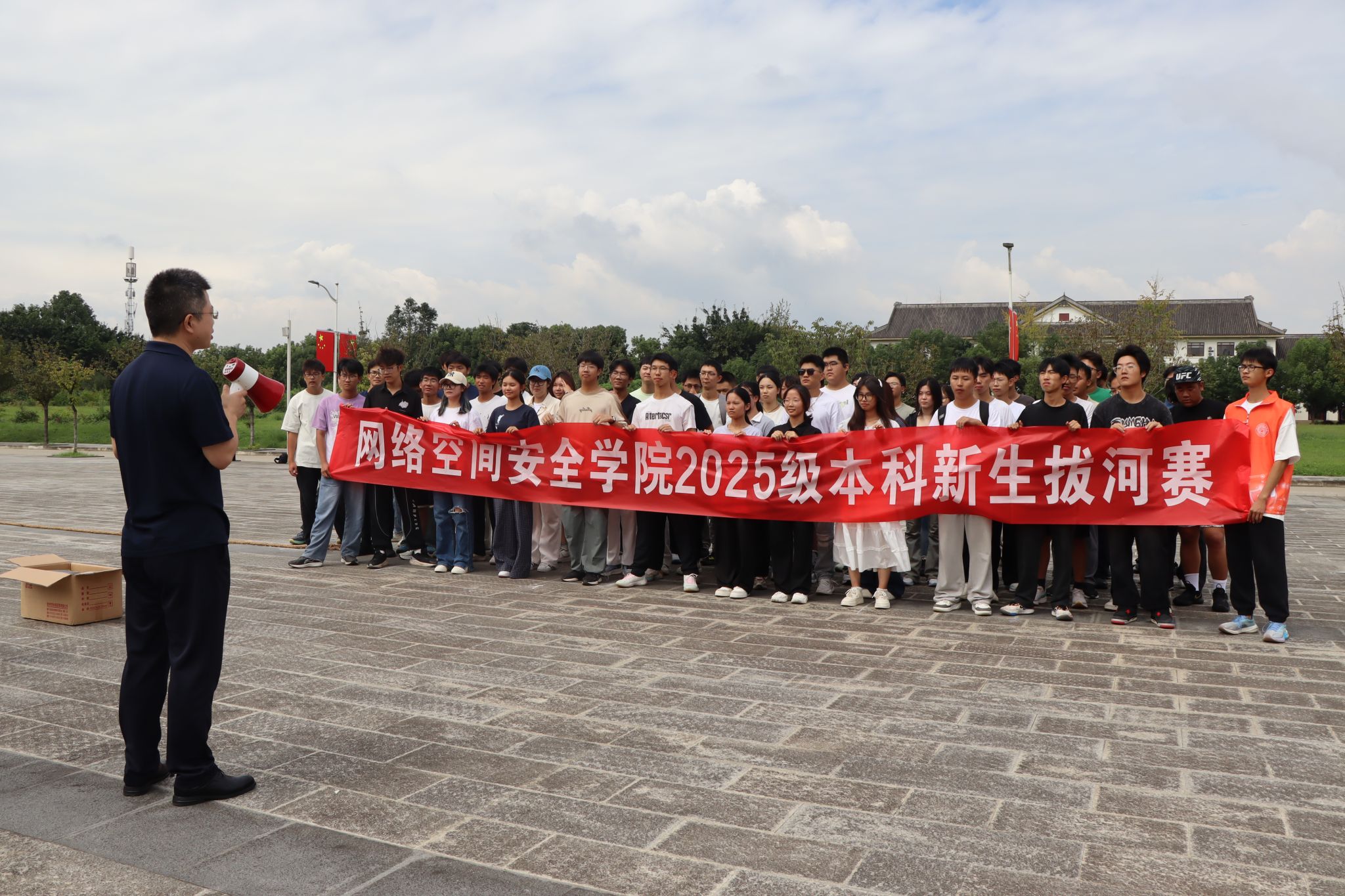 2025级新生拔河比赛在信达楼旁空地顺利举行。作为学院一项传统体育盛事,新生拔河比赛不仅是金秋校园里一道亮眼的风景,更是促进新生班级凝聚力和集体荣誉感培养的重要平台。学院各新生班级踊跃参与。