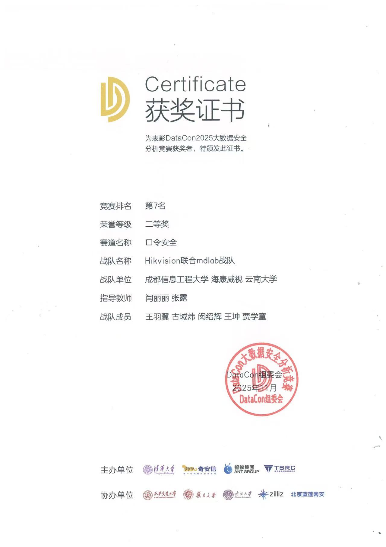 矛盾实验室凭借扎实的技术功底与出色的创新方案,于口令安全赛道中脱颖而出,斩获全国二等奖。