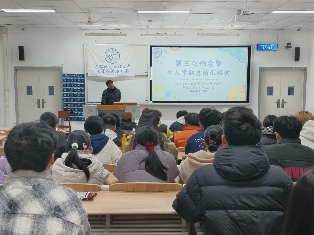 2025年1月4日,青年志愿者协会网络安全分会于H2101教室召开2025-2026学年第一学期第三次工作例会暨工作总结会议。会议围绕学期工作总结、成员评议与下学期目标规划三个方面展开。