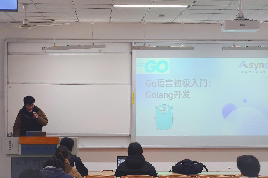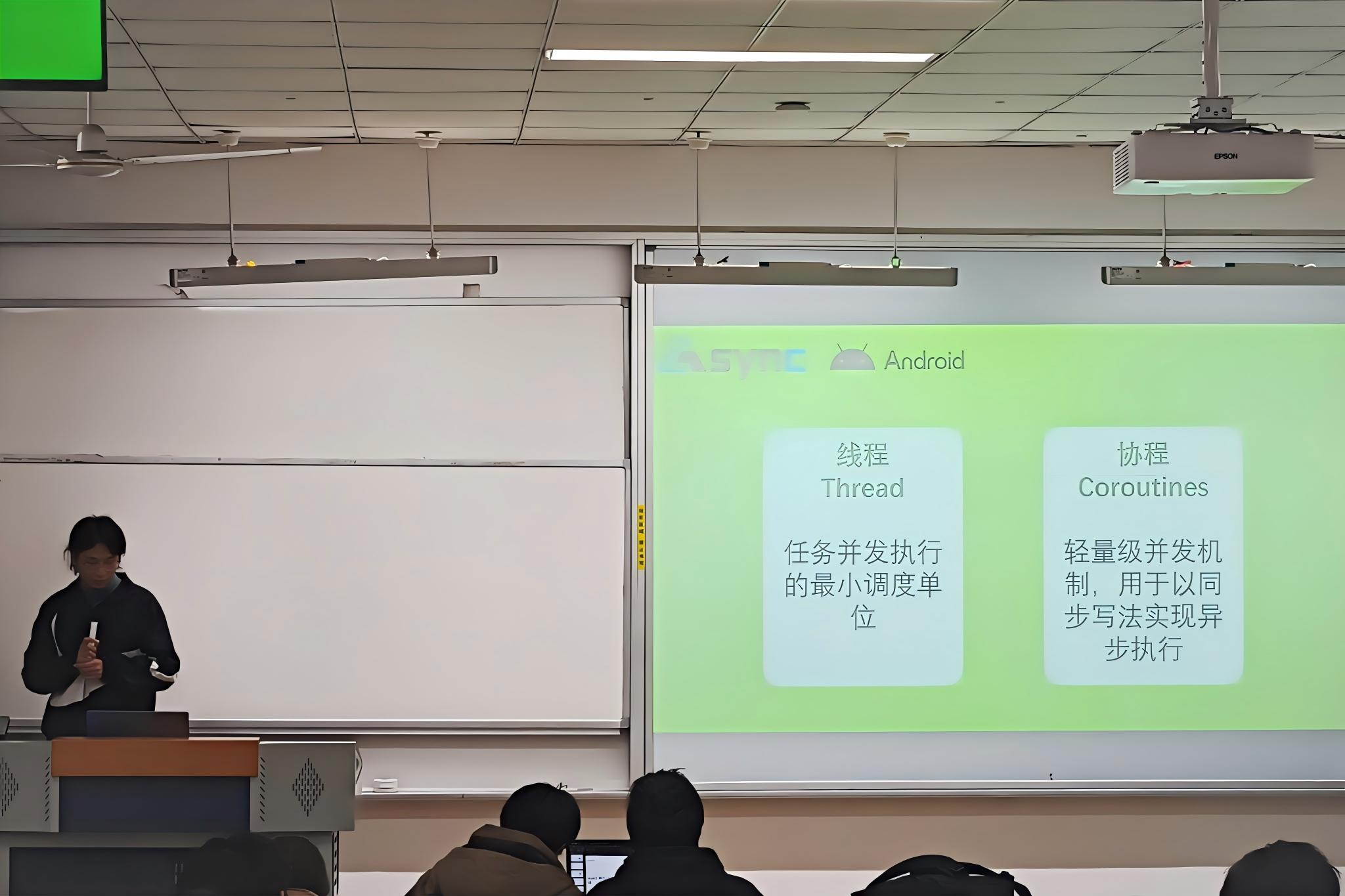 异步实验室在H1107教室举办“异步赋能·码动青春”技术分享会。